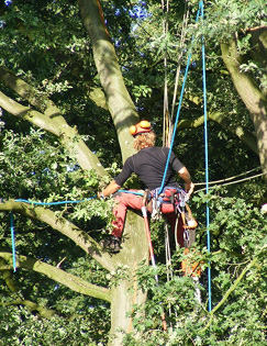 Wir arbeiten mit Hilfe der Doppelseilklettertechnik und können so in Bereiche des Baumes vordringen, die mit Hilfe eines Hubsteigers nicht erreicht werden können, ohne den Baum oder seine Wurzeln zu beschädigen.